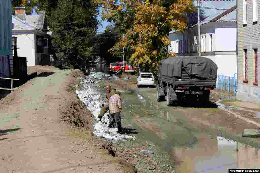 Вода ушла, оставив жителям горы земли на улицах, насквозь промокшие дома и валяющиеся всюду мешки с песком. Русская служба РСЕ/РС