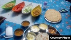 Особый акцент в индийской кухне делается на вегетарианских блюдах, среди которых особенно популярно сабджи. Сабджи - классика ведической кухни, представляет собой рагу из овощей, приправленное смесью специй. Живущим в общежитии индийским студентам еду специально готовят. По качеству эта еда ничем не отличается от той, к которой они привыкли в Индии.