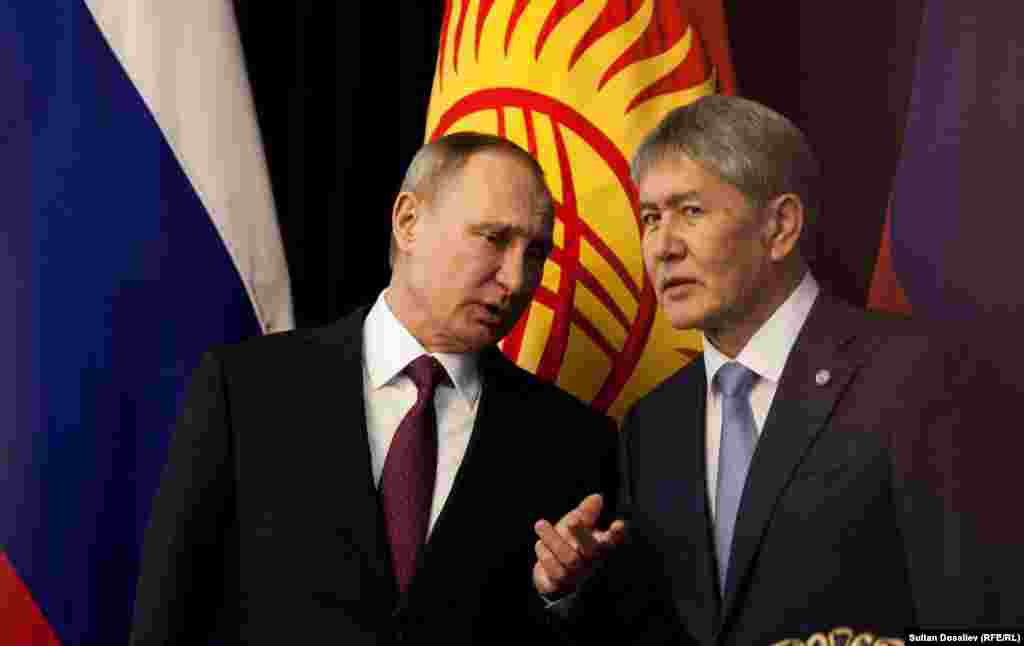 Президент России Владимир Путин прибыл в Кыргызстан. В аэропорту «Манас» его встретил премьер-министр Кыргызстана Сооронбай Жээнбеков. В госрезиденции «Ала-Арча» прошла встреча в узком формате президентов Кыргызстана и России.