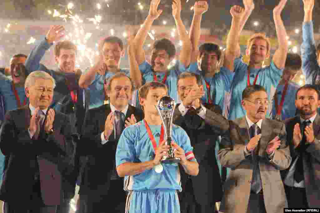 Футбольный матч между командами «Алай» (Ош) и «Алга» (Бишкек), который состоялся 9 октября в Бишкеке, закончился со счетом 7:5. Победу одержали ошане. Первый «Кубок Легенды» победителям вручил лично президент УЕФА, легендарный в прошлом французский футболист Мишель Платини. Фотогалерею подготовили Алмас Ысман, Улан Асаналиев, "Азаттык", Кыргызская служба РСЕ\РС