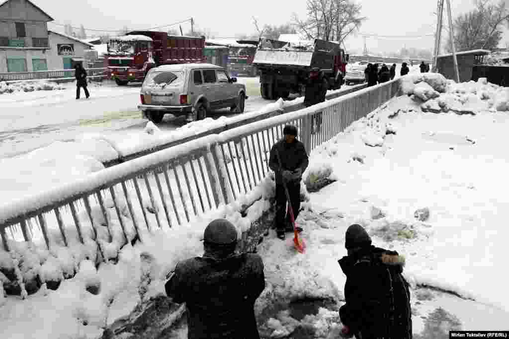 В Кыргызстане власти решили продлить зимние каникулы для детей до 12 января. В Бишкеке городские службы не успевают очищать автотрассы и столичные реки от шуги. Фотографии Мирлана Токталиева, "Азаттык", Кыргызская служба РСЕ/РС