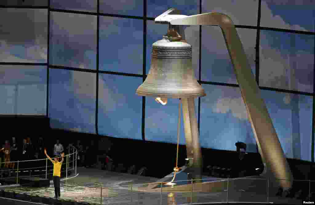 Олимпийские игры торжественно открыл трехкратный олимпийский чемпион по велоспорту Брэдли Уиггинс, ударивший в многотонный колокол