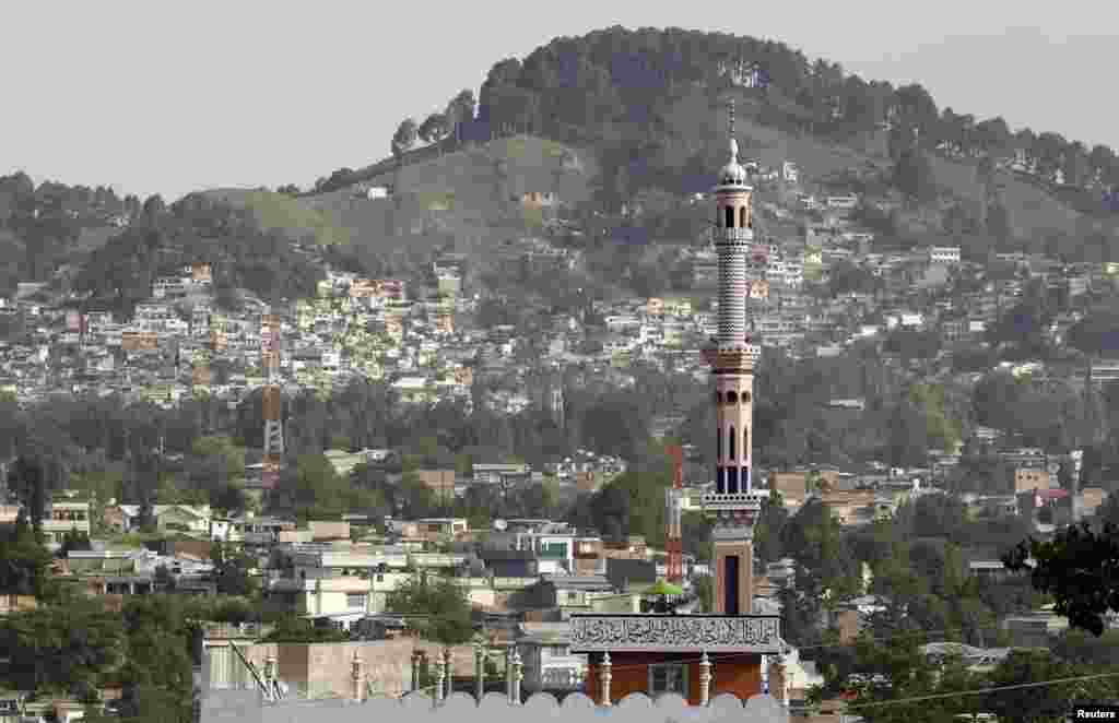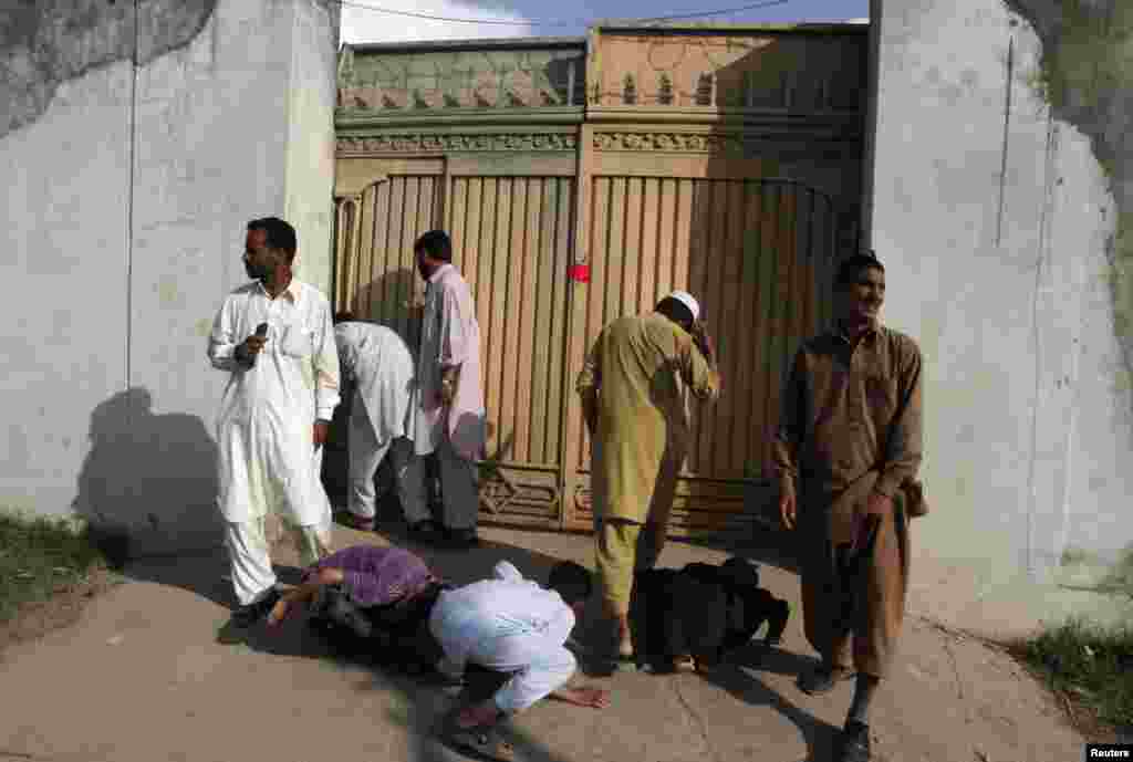 Небольшой пакистанский город Абботтабад, расположенный в провинции Хайбер-Пахтунхва. Здесь последние годы скрывался террорист №1, который и был убит в результате специальной операции.Прохожие фотографируются на фоне ворот дома Усамы бен Ладена. Украинская служба РСЕ\РС