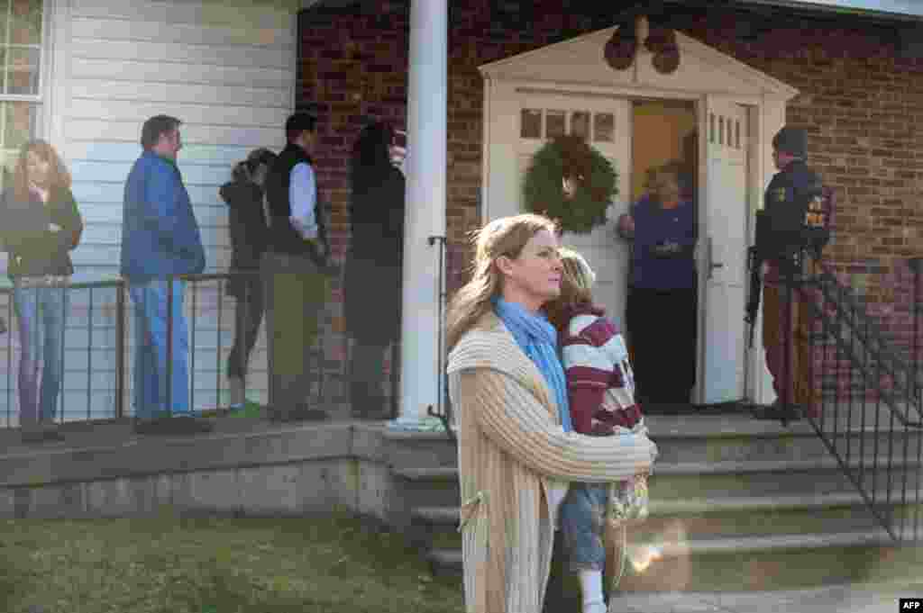 Родственники школьников молятся в церкве Святой Розы в Ньютауне